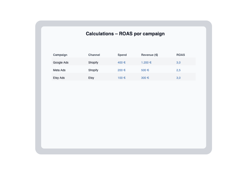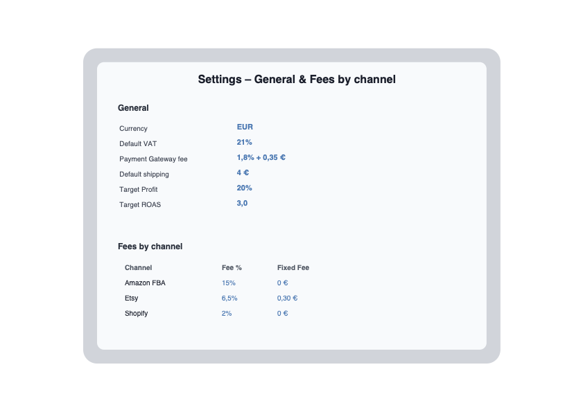 Track your real e-commerce profitability with one clear dashboard. Measure ROAS, CPA, margins and break-even in Excel & Google Sheets.